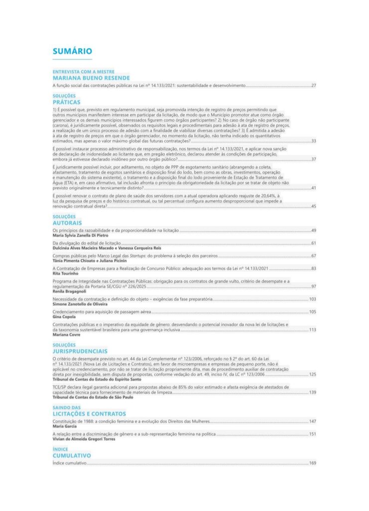 👀 Confira as edições de março dos periódicos “SAM – Solução em Direito Administrativo e Municipal” & “SLC – Solução em Licitações e Contratos”, que contaram com a participação de proeminentes mulheres do cenário do Direito Público contemporâneo.